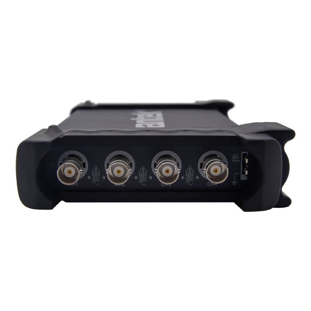 USB осциллограф Hantek 6104BD (4+1 каналов, 100 МГц,) – уникальный по своим характеристикам прибор, который используется для проверки рабочих параметров электронных устройств различных типов. Имеет прочный алюминиевый корпус, предохраняющий схему от возможных механических повреждений. Для нормального функционирования устройство подключается к ноутбуку, персональному компьютеру или к планшету, смартфону. Полученная информация может сохраняться в различных форматах. Отличается небольшими габаритами, в рабочем положении может устанавливаться как вертикально, так и горизонтально. Предназначен для эксплуатации профессиональными мастерами и радиолюбителями.