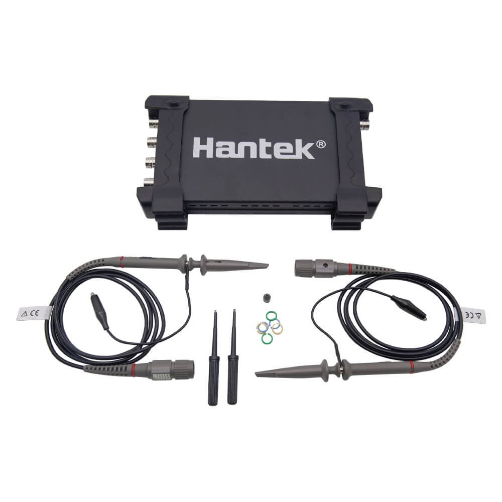 USB осциллограф Hantek DSO-6204BD (4+1 каналов, 200 МГц) –радиоэлектронный прибор, который широко используется в процессе диагностики, ремонта и настройки различных типов приборов и электронных устройств. Для отображения получаемой информации, осциллограф соединяется с компьютером, ноутбуком, планшетом или смартфоном с помощью кабеля через порт USB 2. Прибор имеет различные функции и режимы работы, поэтому считается универсальным устройством. Вся полученная в процессе измерений информация может сохраняться в памяти устройства к которому подключен осциллограф. Это позволяет в дальнейшем проанализировать полученные результаты.