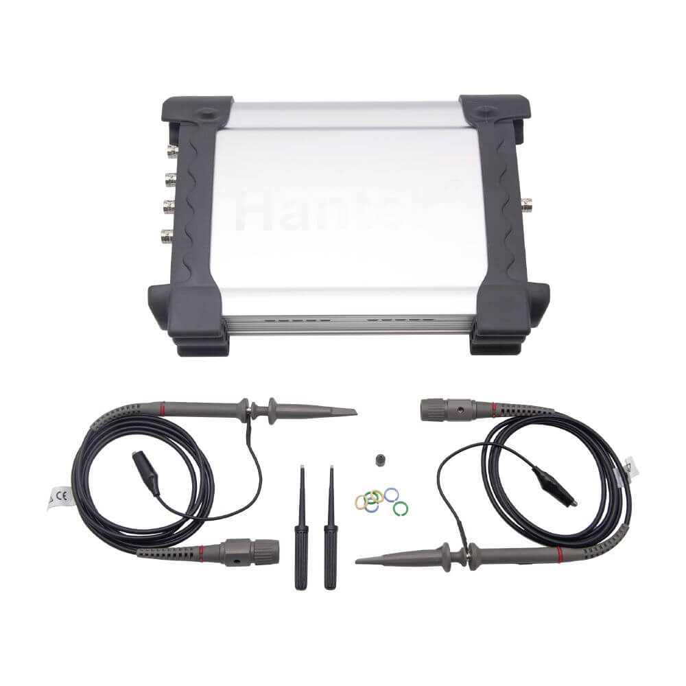 USB осциллограф Hantek DSO3204 – устройство для проведения диагностических измерений рабочих параметров радиоэлектронной аппаратуры. Для проведения диагностики имеется 4 канала 200Мгц. Для отображения результатов измерений прибор подключается к персональному компьютеру, ноутбуку или планшету через порт USB. При необходимости все измерения могут сохраняться в памяти устройства к которому подключается осциллограф. Сохраненные результаты могут использоваться для дальнейшей обработки и анализа. Прибор предназначен для профессиональных мастеров и радиолюбителей. Изготовлен в корпусе из алюминиевого сплава, поэтому не боится случайного повреждения.